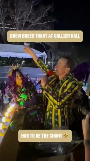 Drew Brees Toasts New Orleans at Gallier Hall Mardi Gras Celebration